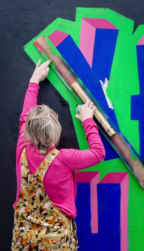 Her husband works as a street artist, and for years she assisted on larger projects – filling colour, observing, absorbing the process.