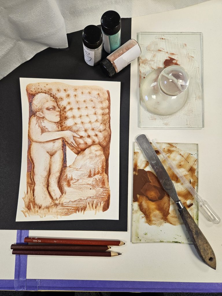 Grounding, for Hanna, meant moving away from the screen and toward the tangible. Toward processes that required time, weight, and touch. The transition wasn’t abrupt – it unfolded gradually, as if the work itself was leading her there.