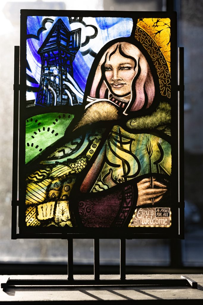 Responding to An Túr Gloine: Artists and the Collective – the early 20th-century stained glass movement led by Sarah Purser – she worked alongside young people, including the National Gallery of Ireland’s Apollo Youth Panel, to create Éiru’s Welcome; A Panel for All, a panel celebrating Ireland as a proudly multicultural country.